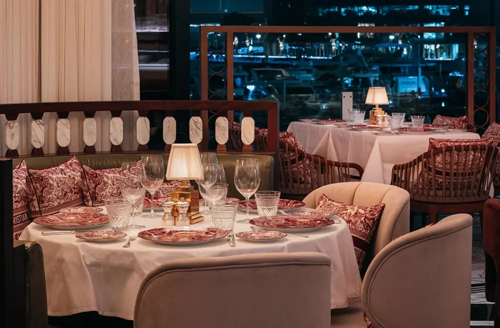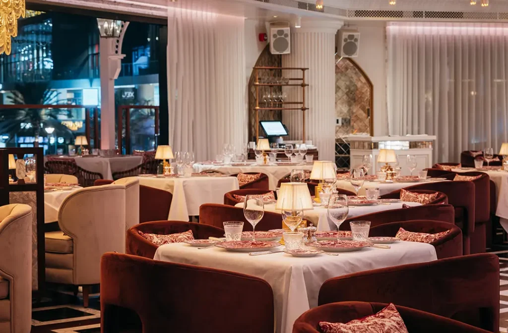 Set against the glittering backdrop of Dubai Marina, FUMÉE Steakhouse at Marina District 8, captures the essence of modern sophistication with a nod to timeless artistry. Inspired by the grandeur of Saint Basil’s Cathedral, the interiors unfold in a symphony of deep textures, golden accents, and sculpted detailing, creating an atmosphere that is both luxurious and inviting.